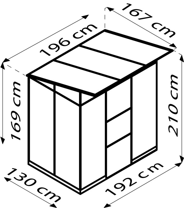 Dankzij het karakteristieke lessenaarsdak geniet u overal in de kas van een royale werkhoogte, waardoor elke centimeter van de 3,3 m² oppervlakte optimaal benut kan worden.