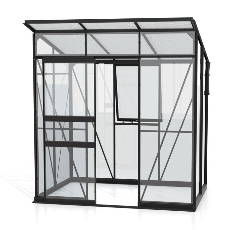 - Licht & Zicht: De zijkanten zijn voorzien van kristalhelder 3 mm veiligheidsglas. Dit geeft de kas een luxe uitstraling en biedt u een onbelemmerd zicht op uw gewassen.