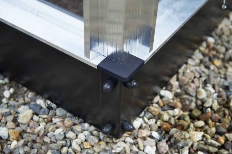 Het geraamte is gemaakt van hoogwaardige aluminium dat bestand is tegen verschillende weersomstandigheden, terwijl het 3 mm veiligheidsglas zorgt voor optimale isolatie en veiligheid.