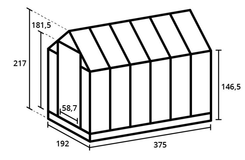Met een nokhoogte van 214,5 cm (excl. de fundering) biedt deze kas een comfortabele stahoogte, zodat je je prettig voelt om in de kas te werken.